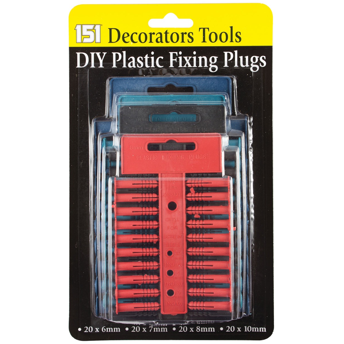 Mount pictures, mirrors and shelves securely with this pack of 80 Wall Plugs from 151. The pack contains twenty each of four sizes – 6mm, 7mm, 8mm and 10mm.