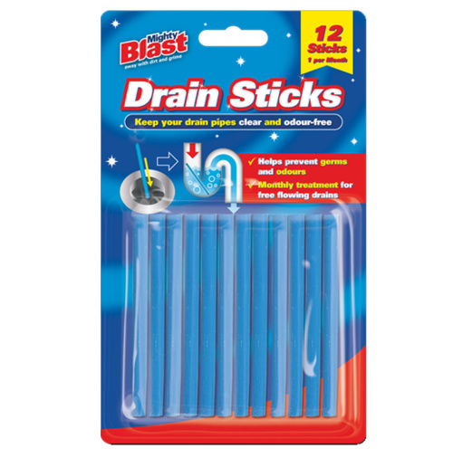 This pack of Drain Sticks contains twelve individual sticks that help to prevent germs and odours in showers, bathroom sinks and kitchen sinks. One stick can be inserted into the plug hole each months to keep drains clear and odour free.