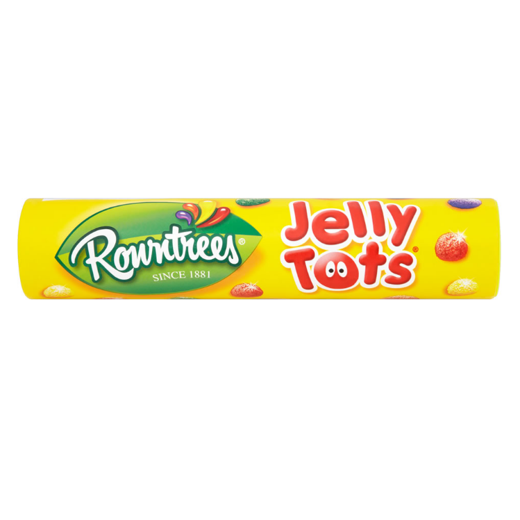Rowntrees Jelly Tots have been a favourite amongst children since their launch in 1967. These small, chewy, sugar-coated sweets come in five fruity flavours: lime, lemon, orange, strawberry and blackcurrant. They contain no artificial colours or flavours, and now feature 25 percent fruit juice.