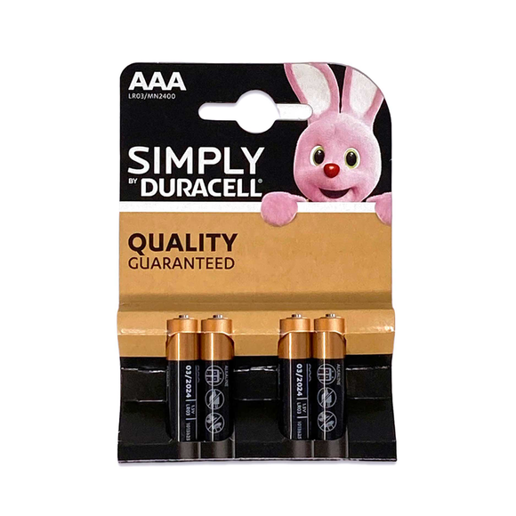 Introducing the Duracell Simply Alkaline Batteries AAA LR06 / MN2400 the trustworthy power source that keeps your devices running smoothly! With this pack of 4 units, youll never have to worry about running out of batteries again. Duracell batteries are renowned for their long-lasting performance and reliability. Designed to power a wide range of devices, from remotes to toys and portable gadgets, these AAA batteries are a versatile solution for all your energy needs. Whether youre a busy parent, a student, or a professional, Duracell Simply Alkaline Batteries are an essential part of your daily life. Each battery is engineered to deliver consistent power output, ensuring your devices stay operational for longer periods. With a shelf life of up to 5 years, they are perfect for stocking up and always having a reliable power source at hand. Duracell is committed to your safety, and thats why these batteries are designed with advanced anti-leak and anti-corrosion technology. This ensures your devices are protected from potential damage caused by battery discharge. Say goodbye to frequent battery changes and hello to convenience and dependability with Duracell Simply Alkaline Batteries. Trust the brand that professionals and households have relied on for generations. Dont compromise on power; choose Duracell for a battery you can count on.