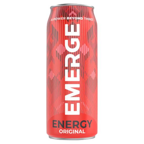 Emerge is a great tasting energy drink specifically developed to energise your body when you need it most. Niacin, Pantothenic Acid, Vitamin B6 and Vitamin B12 contribute to the reduction of tiredness and fatigue. Each can contains at least 25% of these B vitamin DRIs*. *% Daily Reference Intake Consume in moderation as part of a varied and balanced diet and healthy lifestyle.