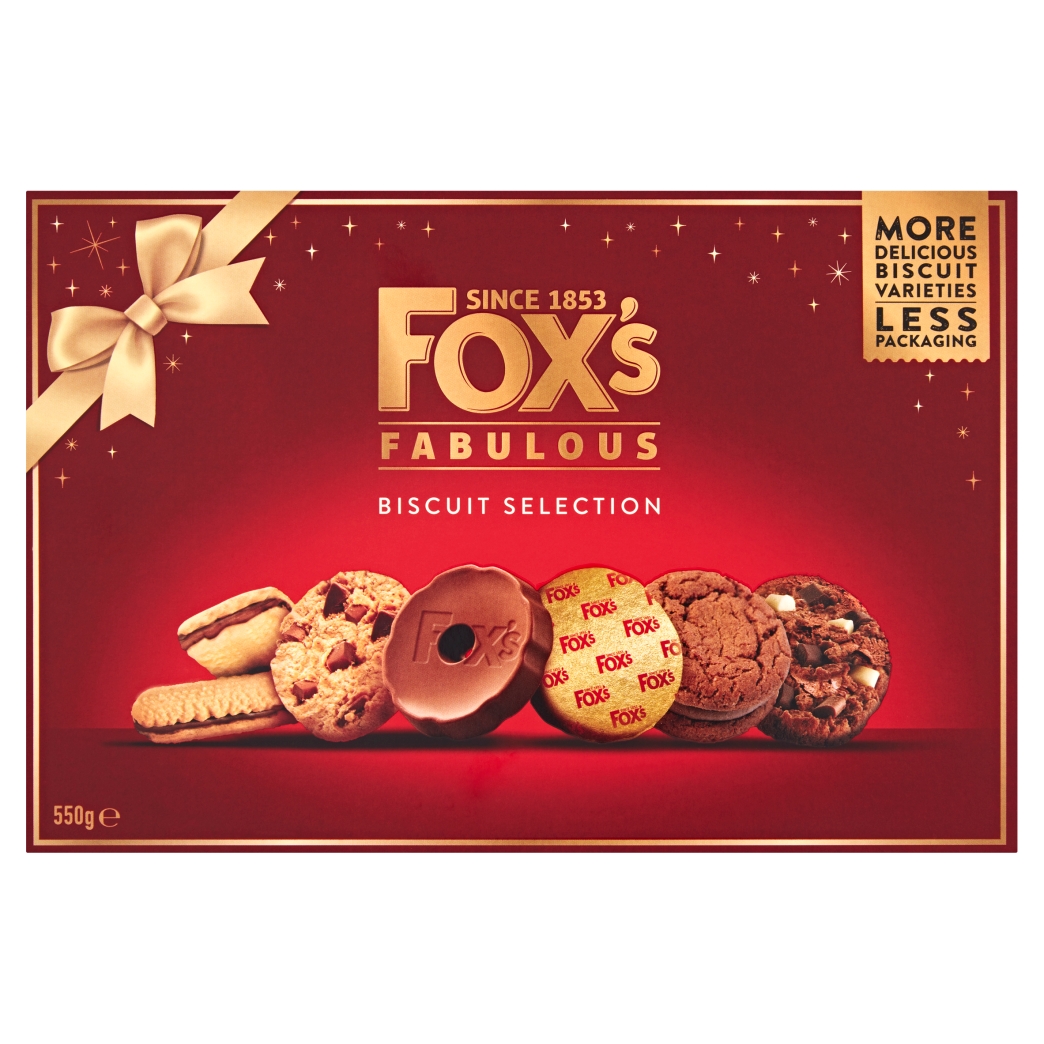 An Assortment of Chocolate, Plain, Cream and Jam Filled Biscuits. Fabulous Milk Chocolate Fudge Sundae, Fabulous Milk Chocolate Cookies, Fabulous Chocolatey Milk Chocolate Rounds, Favourites Milk Chocolate Viennese, Favourites Double Choc Crunch Creams, Favourites Jami’n’ Cream, Favourites Golden Crunch Creams, Favourites Chocolate & Cream Viennese, Favourites Butter Crinkle Crunch, Fabulous Triple Chocolate Cookies. At fox’s, we understand that every biscuit needs to give you a little moment of pleasure. That’s why we’ve used our expertise, developed since 1853, and high quality ingredients to bake our fantastic tasting Fox’s Classic biscuit selection for everyone to enjoy. Fox’s and Favourites are registered Trade Marks. Suitable for Vegetarians. Pack size: 550G.