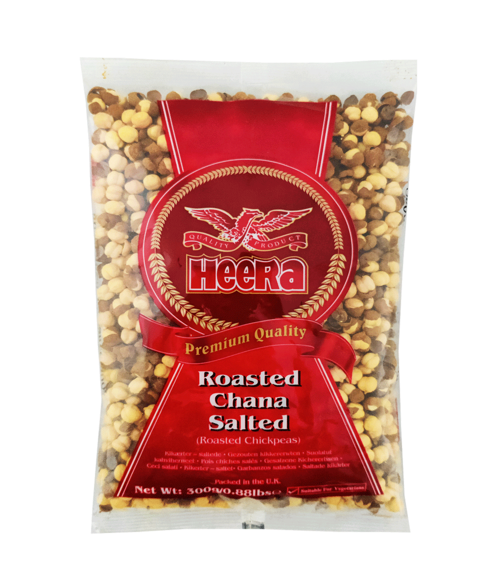 Heera Roasted Chana Salted 300 g (Roasted Chickpeas). Whichever region of Indian you travel to you are guaranteed to find both salted and unsalted roasted chickpeas being consumed with drinks or as a snack. They are wonderfully moreish and are a great alte…