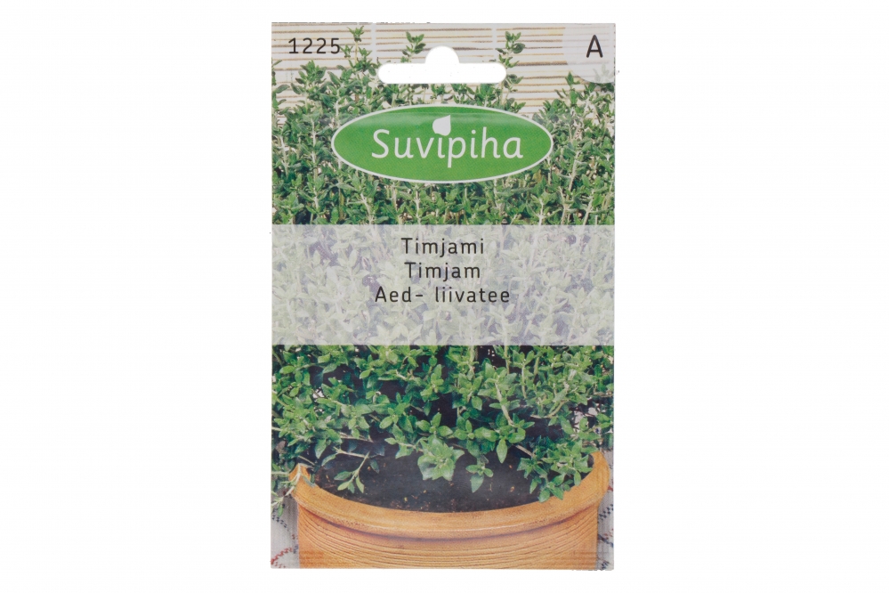 Wintertijm. Zaaien vanaf maart t/m april in een kweekbakje of van april t/m juni buiten op een zaaibed; n keer verspenen en vervolgens uitplanten. Natuurgeneesmiddel (tijmsiroop en als thee), dat zowel vers als gedroogd o.a. wordt gebruikt bij vleesgerechten, sauzen en salades.Zaaien op een zaaibed1. Het zaaibedje moet beschut en in halfschaduw liggen; bewerkt de grond voor door deze om te spitten zodat het overtollige water gemakkelijk kan afvloeien. Maak de grond losser en breng structuur aan door de aarde te mengen met turfstrooisel en/of organische mest.2. Strooi de zaden zo gelijk mogelijk uit. 3. Houdt het zaaisel de eerste dagen vochtig. Eventueel kan je hierbij gebruik maken van vochtige lappen. Laat de grond beslist niet uitdrogen. 4. Houdt het zaaibed onkruidvrij. 5. Na opkomst plant je de plantjes uit op hun uiteindelijke plaats van bestemming. Op de verpakking staat aangegeven op welke afstanden dit het beste kan gebeuren.