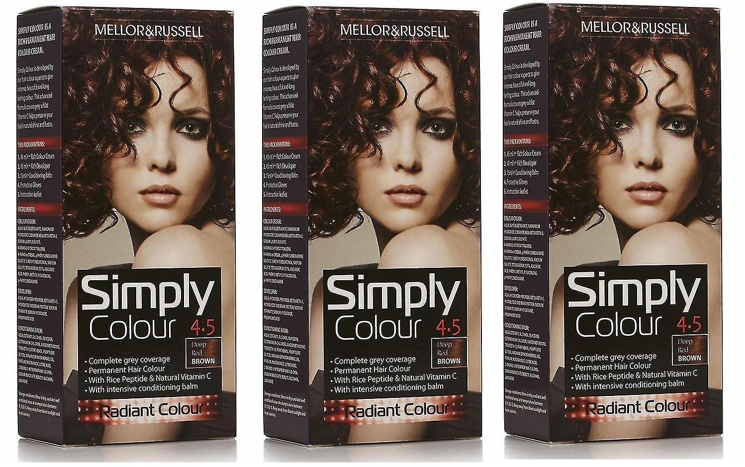 Mellor Russell 3 X Simply Permanent Hair Colour 4 5 Deep Red Brown