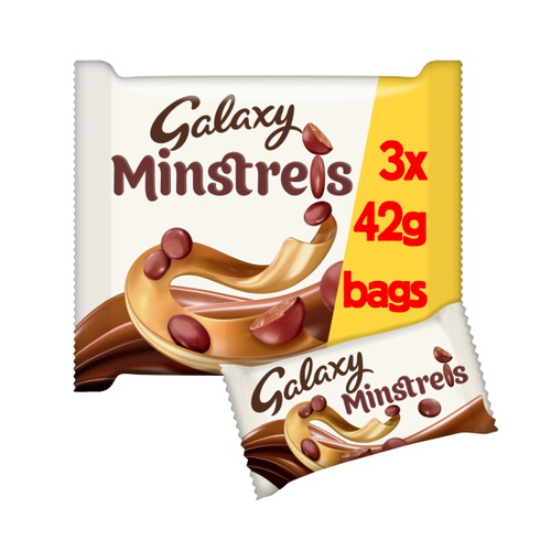 Minstrels bite-sized chocolate treats, these classic chocolates comprise smooth and creamy milk Galaxy chocolate encased in an irresistibly crunchy shell. 3 x 42g.Best Before 08_01_23.