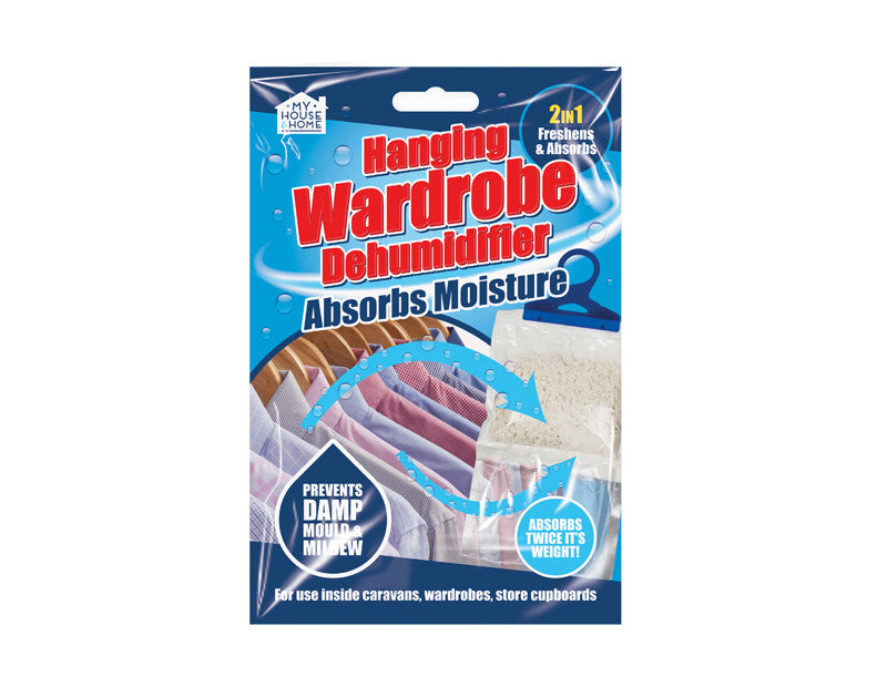 This Hanging Wardrobe Dehumidifier is ideal for use inside wardrobes, caravans, cupboards and more, while offering a 2 in 1 freshen and absorb action. The wardrobe dehumidifier will absorb twice its weight in moisture and helps to prevent damp, mould and m…