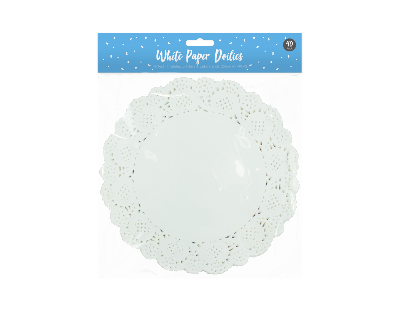 This pack of Paper Doilies contains forty white doilies that measure approximately 24cm in diameter. Ideal for plates, platters and cake stands.