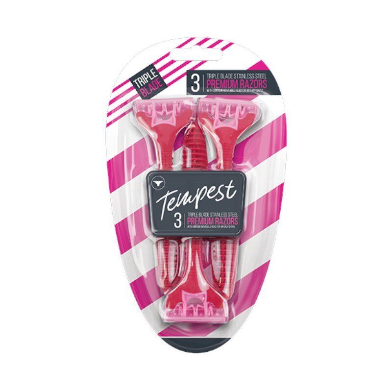 Ladies Disposable Triple Action Razors – 3 Pack Description These Ladies Disposable Triple Blade Razors are suitable for shaving all areas of the body and feature three stainless steel blades and contouring heads. Each pack contains three premium quality razors. Details. OPC P79K275 Brand Tempest Codes 5056170302234 (EAN).