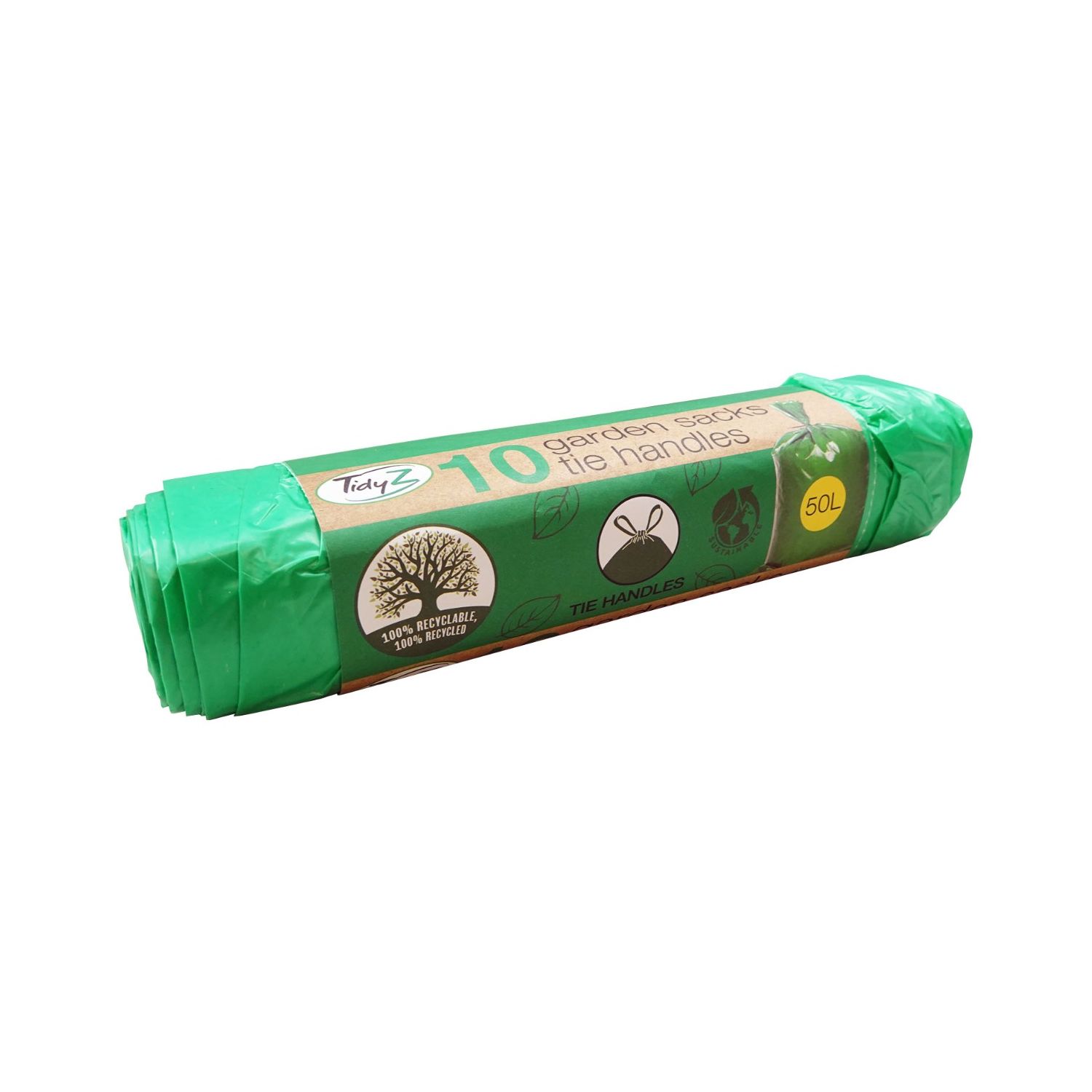Tidyz 50 Litre Green Garden Sacks With Tie Handles Roll Of 10