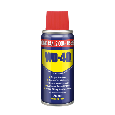 New to our range. WD-40 Multi Use Lubricant Spray 80ml. Top quality multi use spray, 1000s of uses. Top quality multi use spray, 1000s of uses. Stop squeaks, loosens rusted parts. Frees sticky mechanismsIntroducing this handy size can of WD40, this world f…
