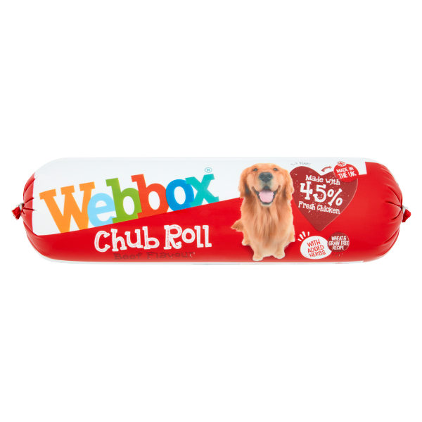 Webbox Chub is a complementary pet food for adult dogs from 12 months made with 45% fresh chicken. With added herbs. Wheat & grain free recipe.